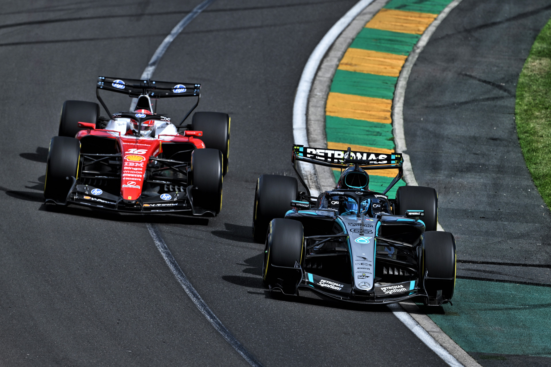 オーストラリアGPでジョージ・ラッセル(メルセデス)とシャルル・ルクレール(フェラーリ)がトップを争い、数周にわたるマルチオーバーテイクバトルを展開。レッドブル独占体制に挑む両チームの熾烈な争いは、競争構図変化の兆しとなり得る。
